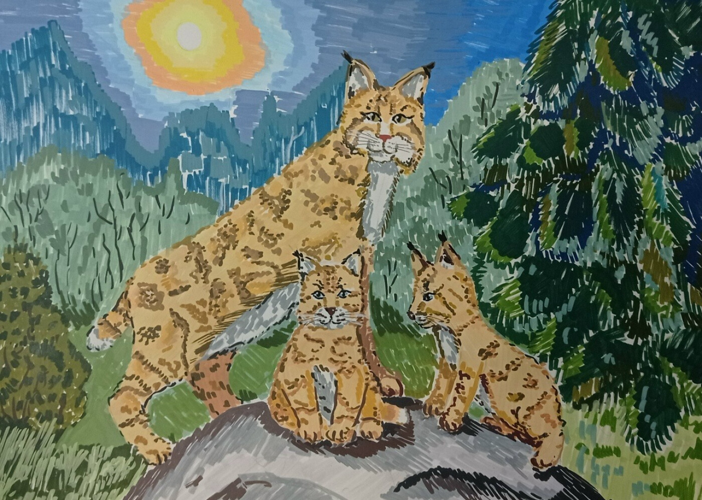 Семейство рысей, 2026, акриловые маркеры, 29,7 х 42 см, 13 лет