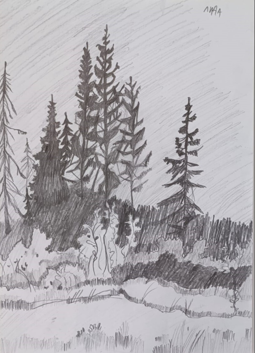 Пейзаж родного края, 2025, простой карандаш, 30*40, 14 лет