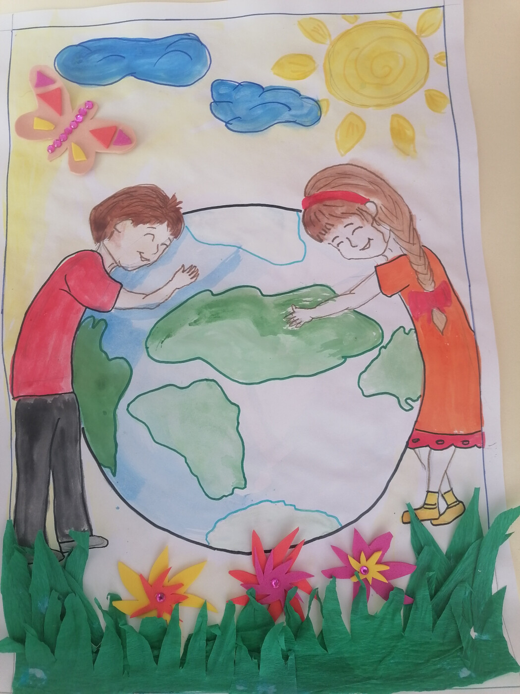 краски природы , создание 2026г, рисование с элементами аппликации, используемые матерьялы: гуашь, бумага, фломастеры, карандаши, источки, креповая бумага, клей, формат А3, 7лет