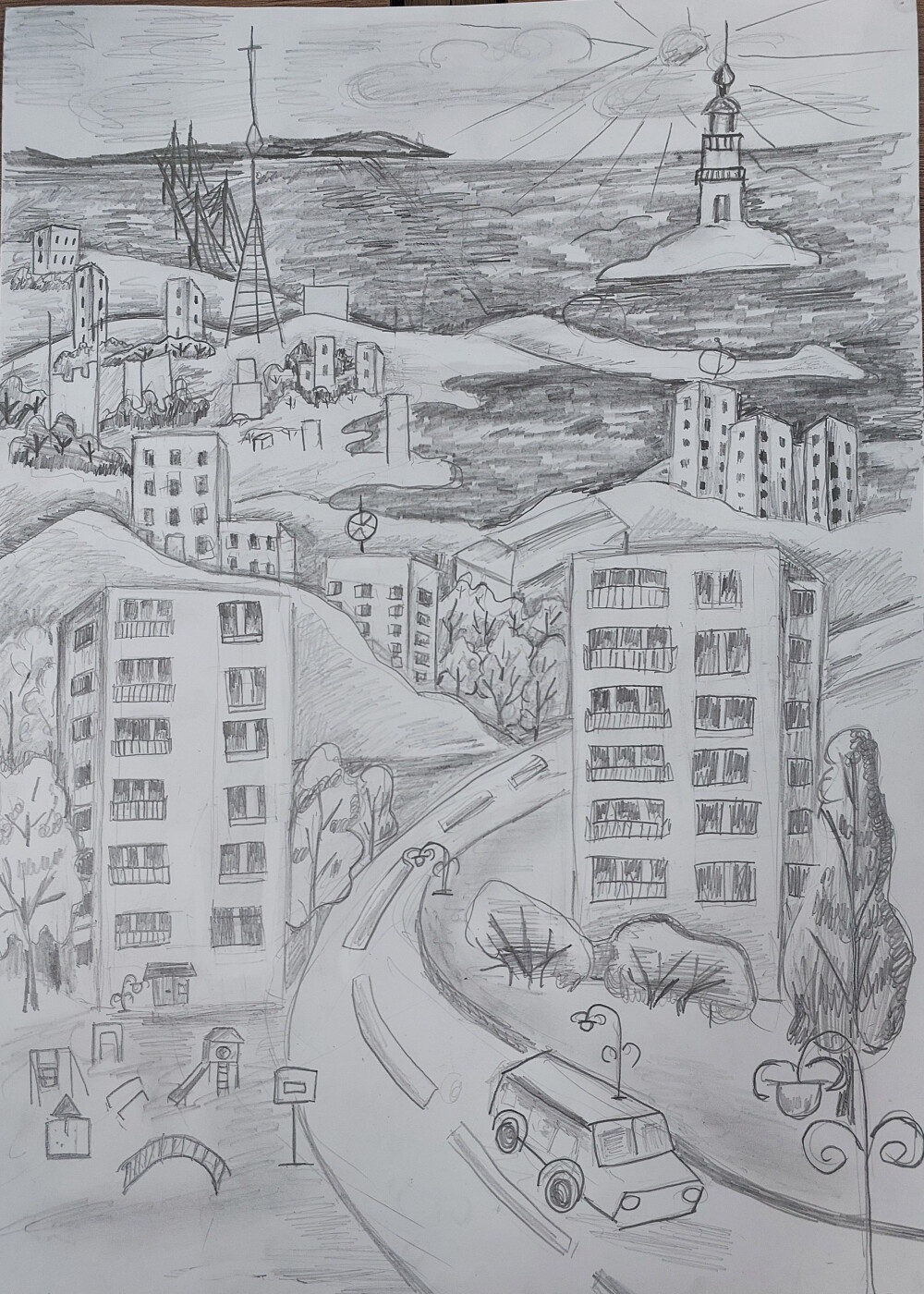 Владивосток. Маяк Токаревского. 1. Год создания 2025 2. Графика, карандаш. 3. 30×40. 4.14 лет