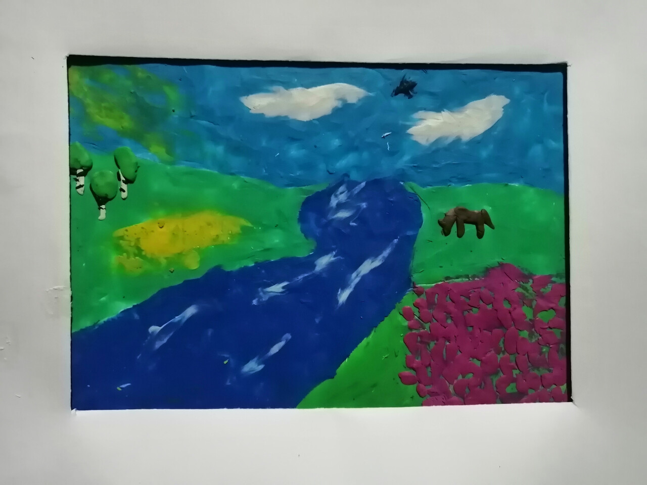 Родные просторы, 2026,пластилинография(бумага,пластилин),21*30,10 лет,
