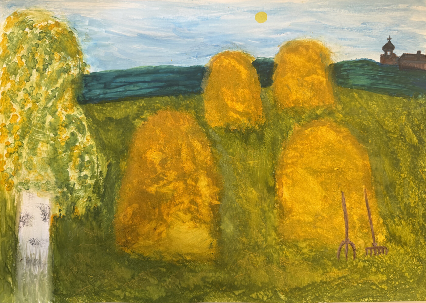 Сенокос, 2026, бумага, гуашь, 29,7х42 (формат А3), 8 лет.