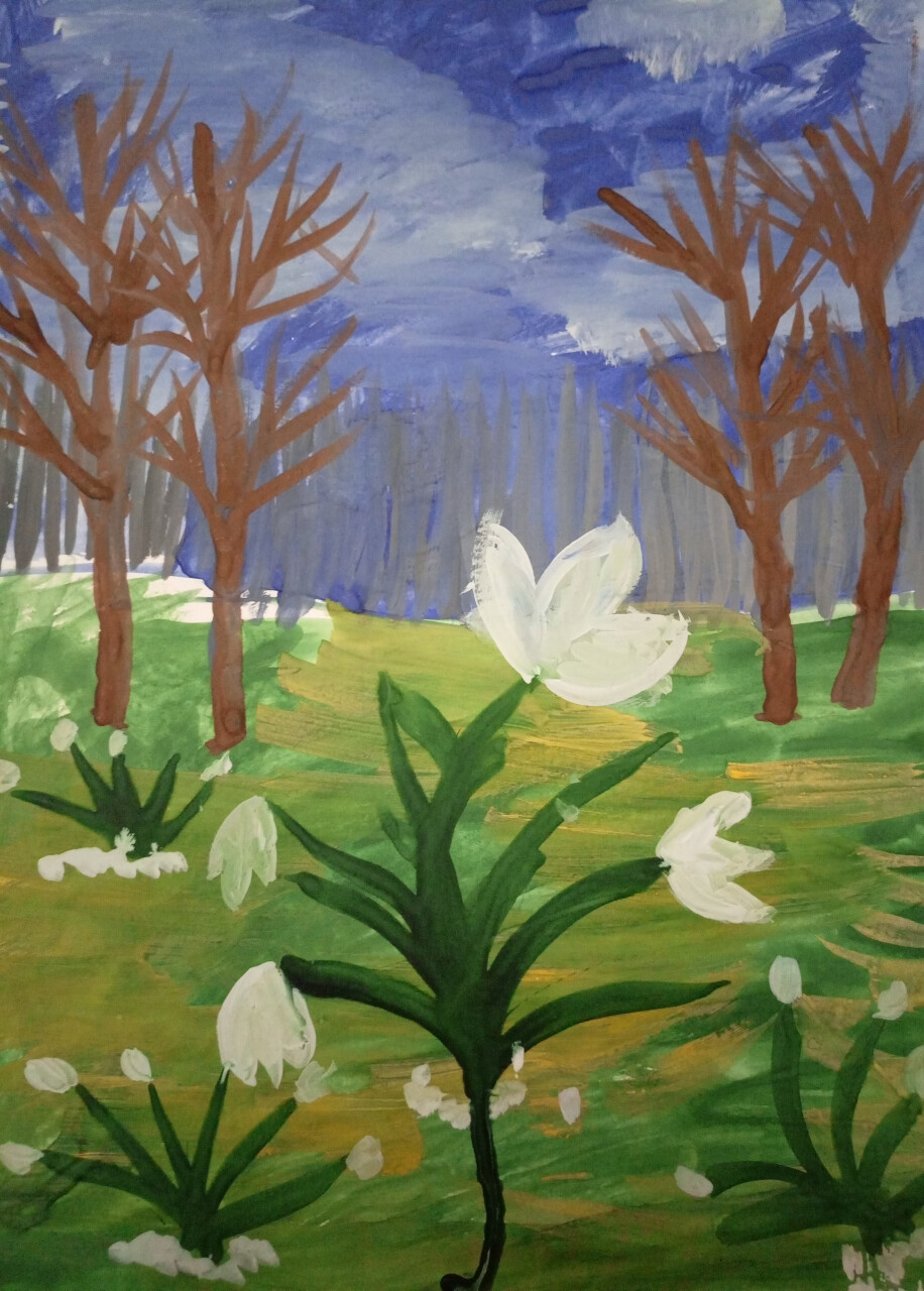 "Подснежник". 2023. Гуашь. 30*40 7 лет. .