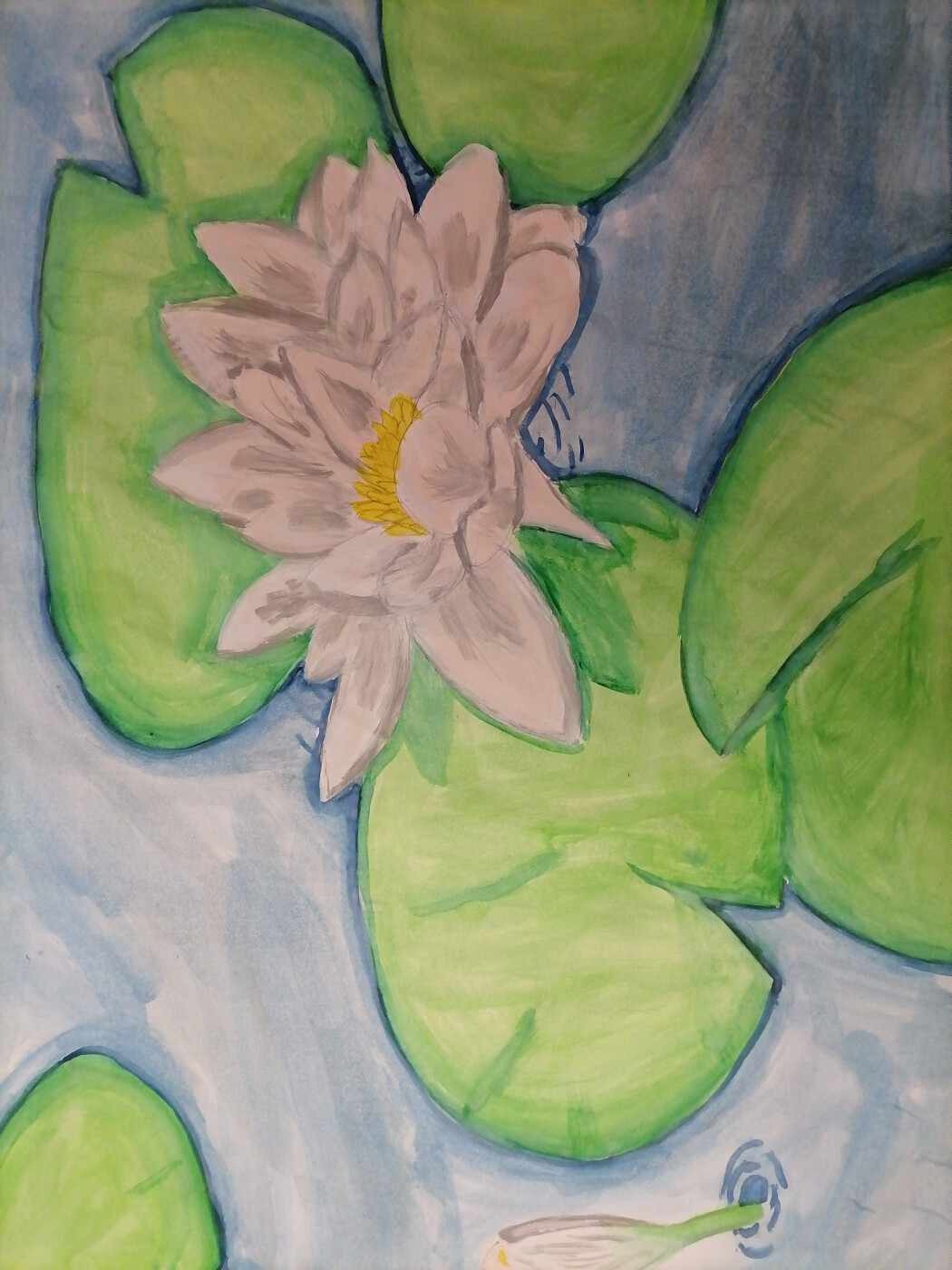 Белая кувшинка-2026г,акварель,бумага,40х30,12лет