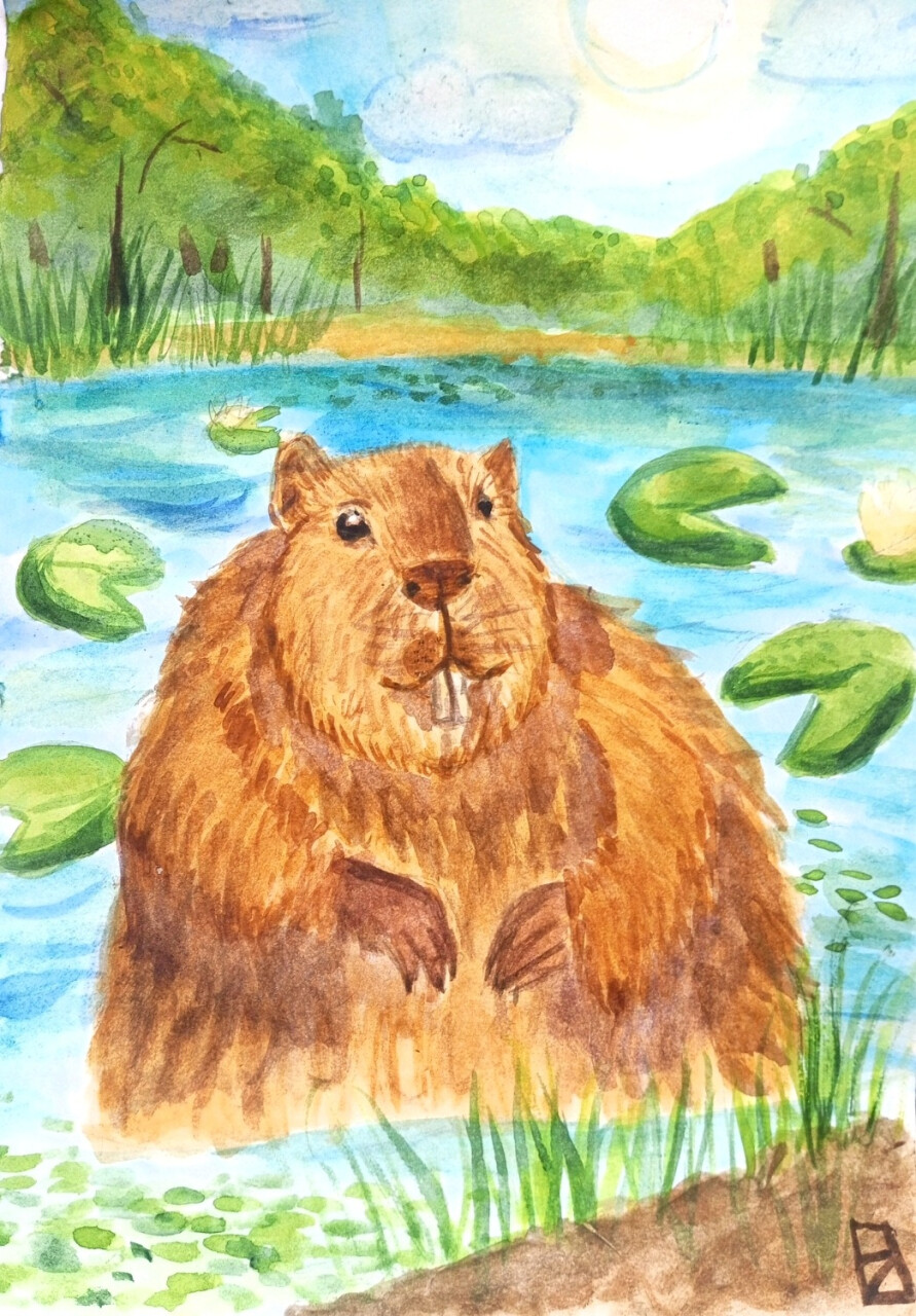 "Я тоже тут живу" название - " УТРО БОБРА" 20х30 бумага /акварель 2026, 13 лет