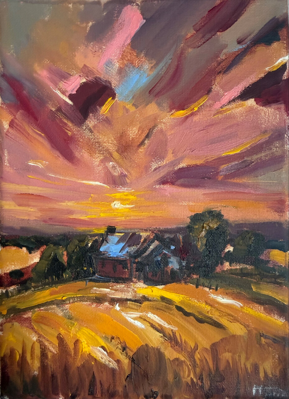 На написание картины вдохновил бабушкин дом в Белгородской области, куда раньше мы часто ездили семьей. Там были очень красивые закаты, любоваться которым не мешали высокие дома