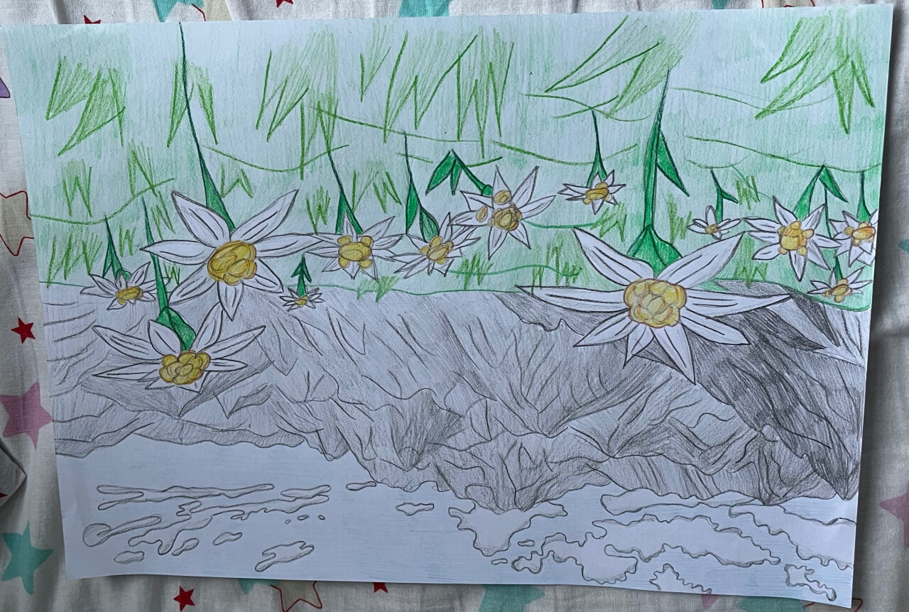 Эдельвейс, 2026, цветные карандаши, 297x420, 17 лет