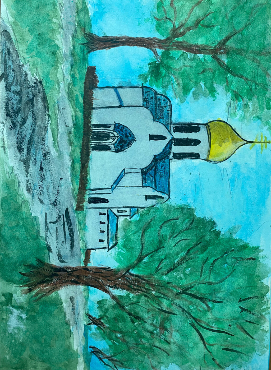 Старая церквушка, 2026, бумага, акварель, А3, 7 лет