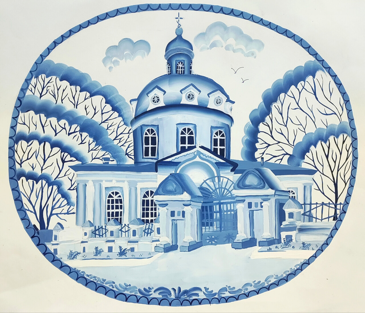Успенский собор достопримечательность нашего города. Я этот храм решила выполнить по мотивам росписи гжель.
