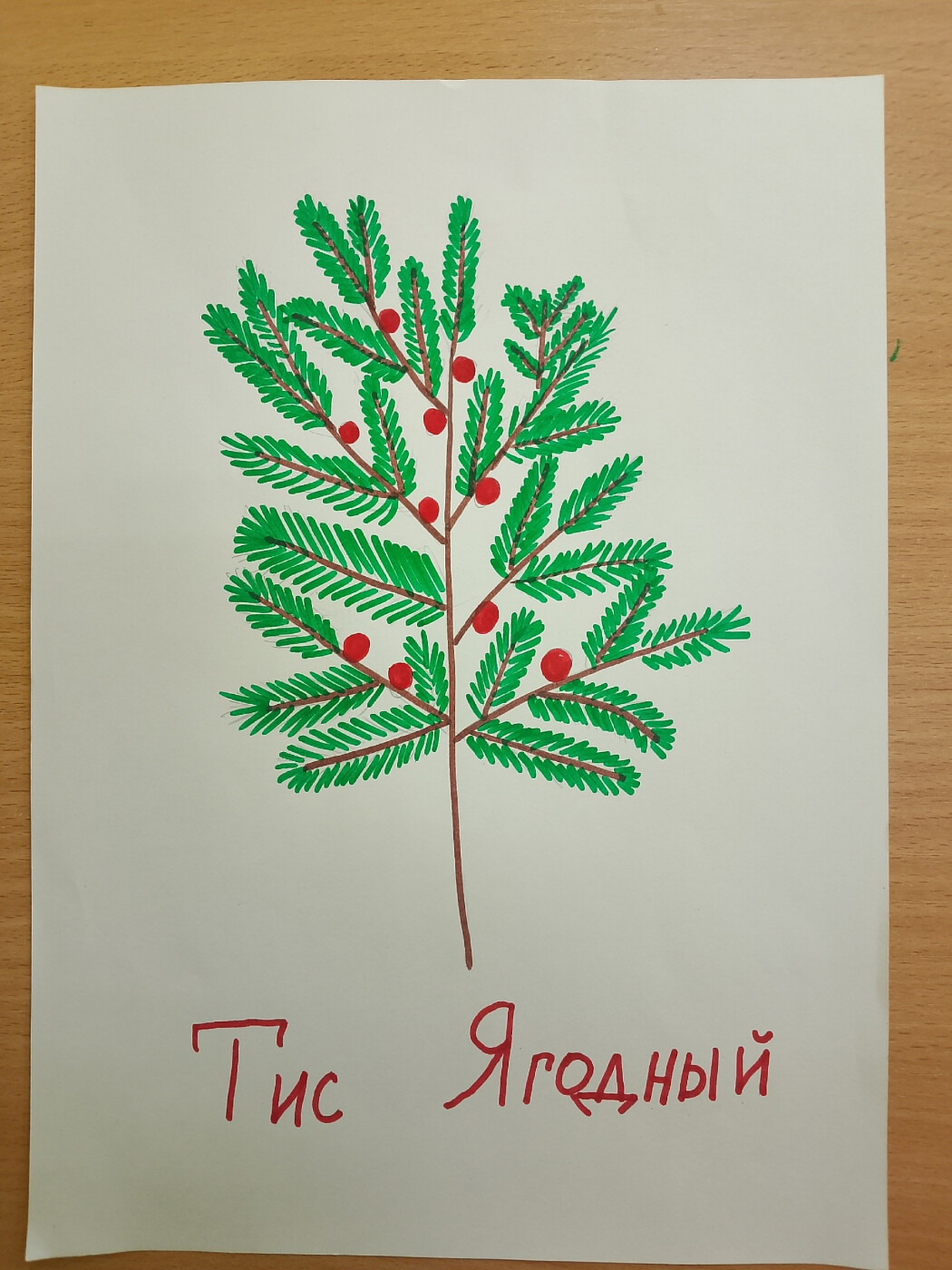 Тис ягодный, 2026, простой карандаш, фломастеры, 21*29, 3 года