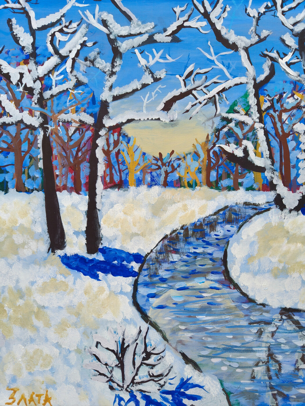 В гостях у зимнего леса, 2026, холст, темперные краски, 40х50, 10 лет.
