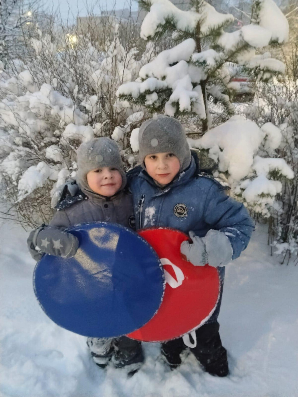Вместе с братом на ватрушках