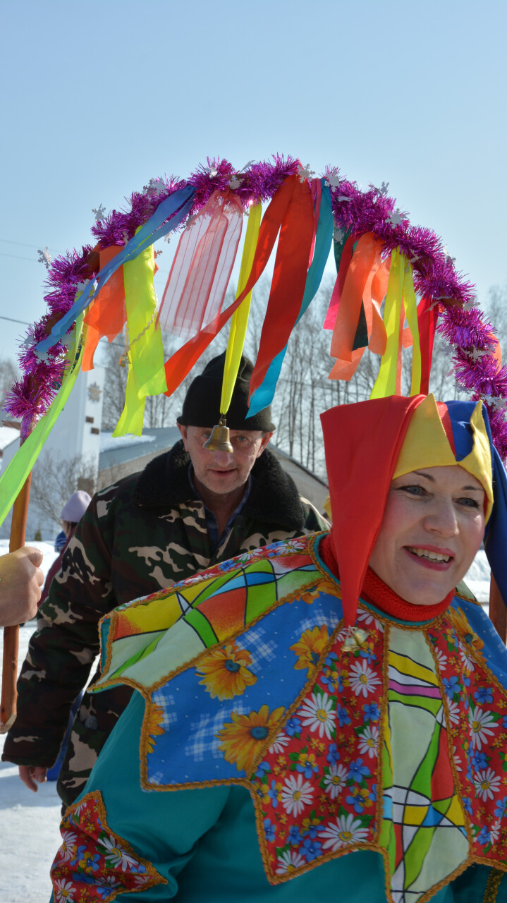 Фотография «Ворота счастья» была сделана 17 марта 2024 года во время проводов русской зимы в Масленицу в селе Новоникольское Варнавинского района Нижегородской области. «Ворота счастья» - это такой обычай. К дуге, которая красочно оформлена, привязан колокольчик. Каждый желающий должен пройти через эти ворота и удариться головой о колокольчик, чтобы он прозвенел. Тогда этого человека весь год будут сопровождать удача и везение. Людям маленького роста нужно даже подпрыгнуть, чтобы коснуться головой о колокольчик.