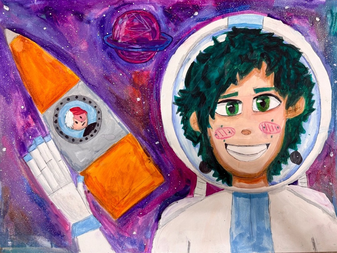 Работа "Поколение Z тоже в теме" отображает заинтересованность молодежи космическим пространством. Дети этого поколения также мечтают быть космонавтами, а не только фрилансерами или блоггерами.