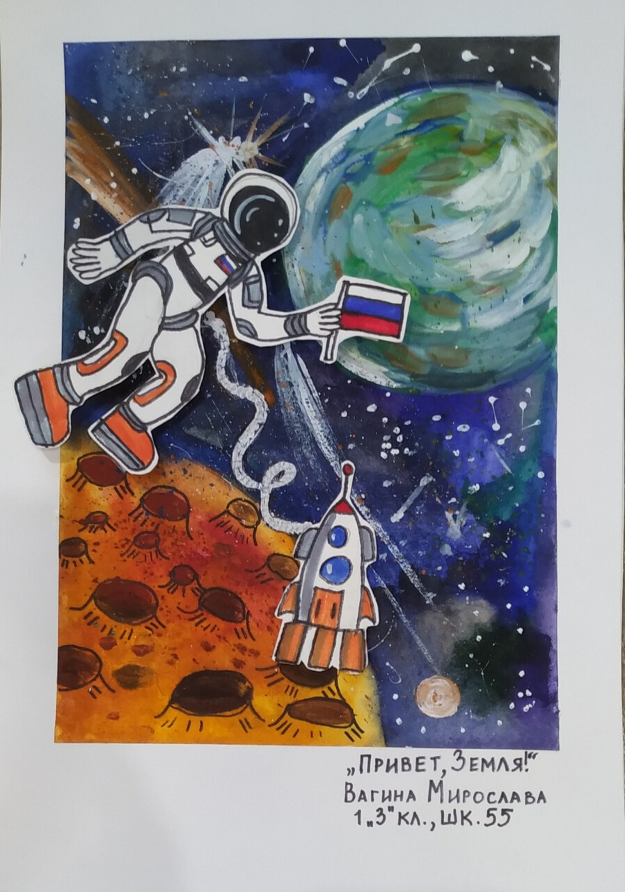 - «Привет,Земля!» (бумага, акварель, гуашь, маркер)
