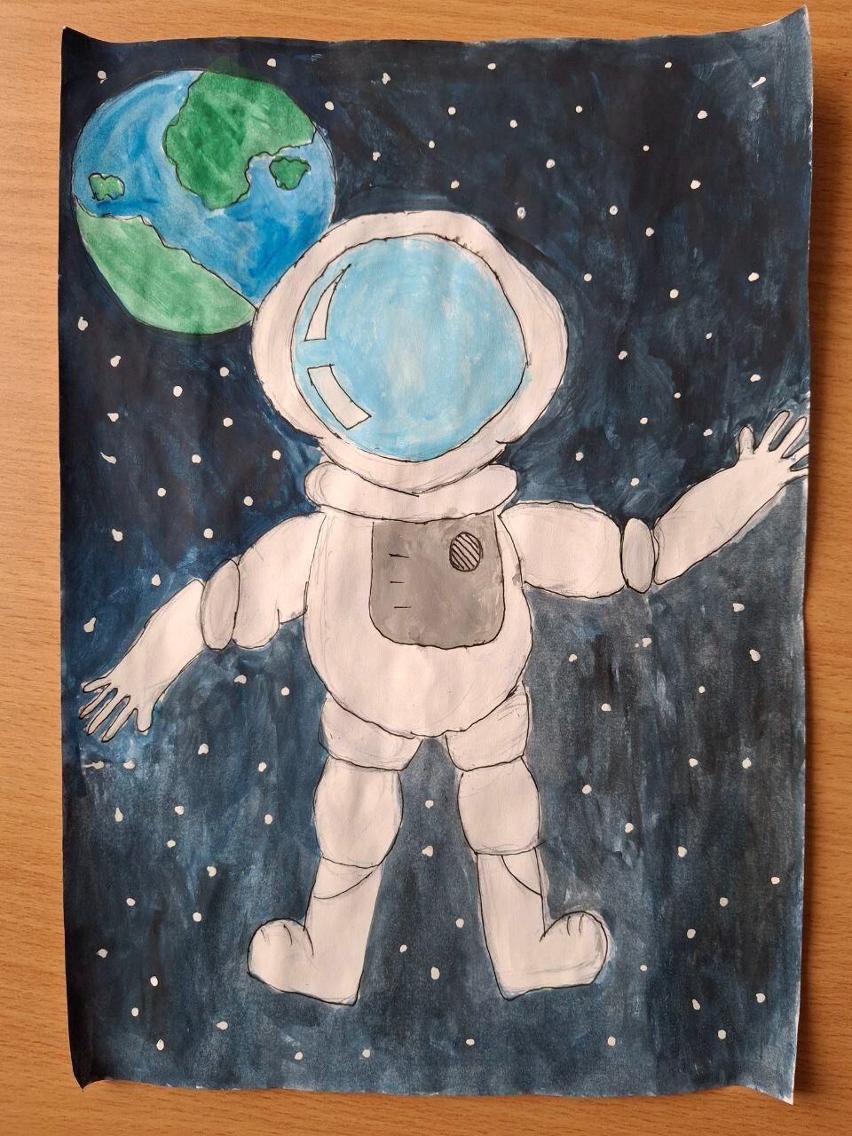 Яркими мазками на холсте рождается космос. Не просто бездонная тьма, усыпанная звездами, а живое, дышащее пространство, полное красок и тайн. В центре композиции – фигура космонавта, парящего в невесомости. Он – первый, кто отважился взглянуть в лицо бесконечности, первый, кто покинул колыбель человечества.