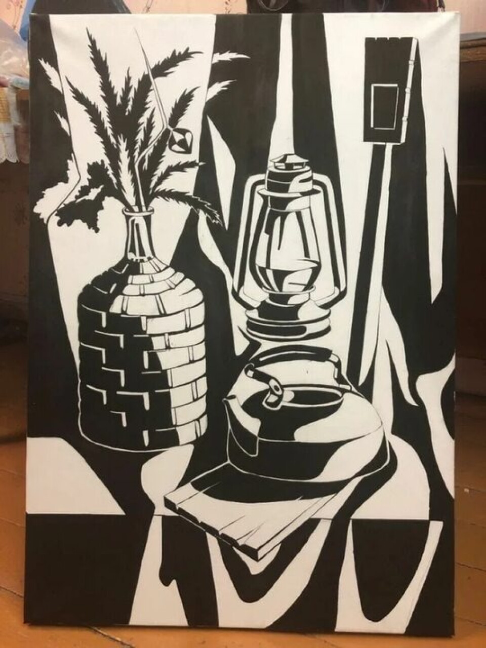 Я нарисовала натюрморт в чёрно-белом стиле.