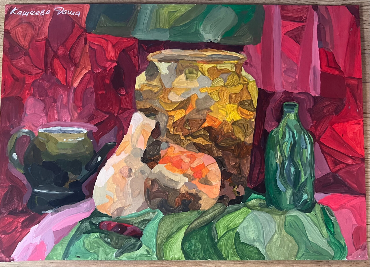 Центр художественной подготовки и дизайна, педагог Мария Федосеева. Декоративный натюрморт Кащеева Дарья 14 лет