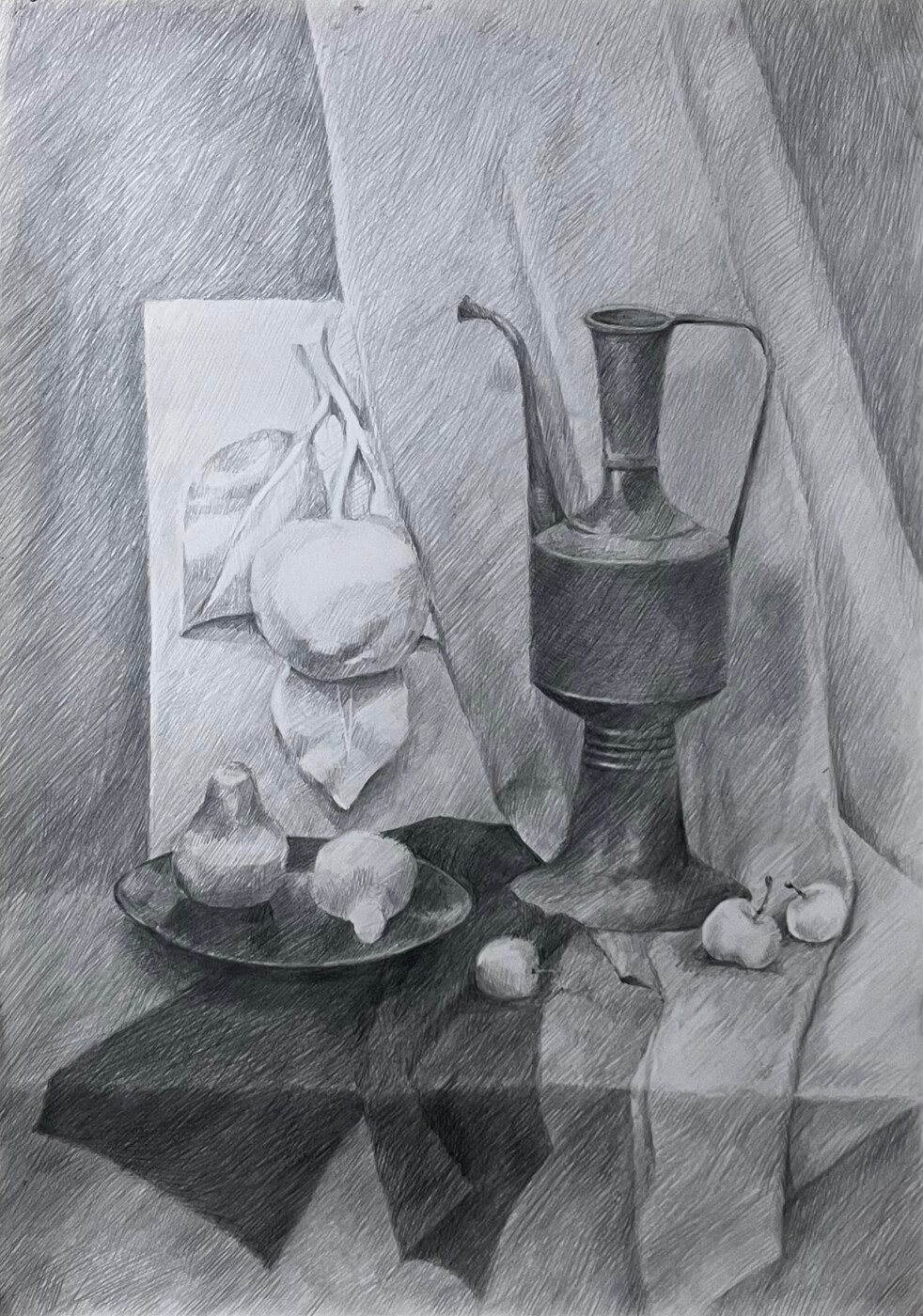 тональный натюрморт с гипсовой плитой, формат А2 тональный рисунок