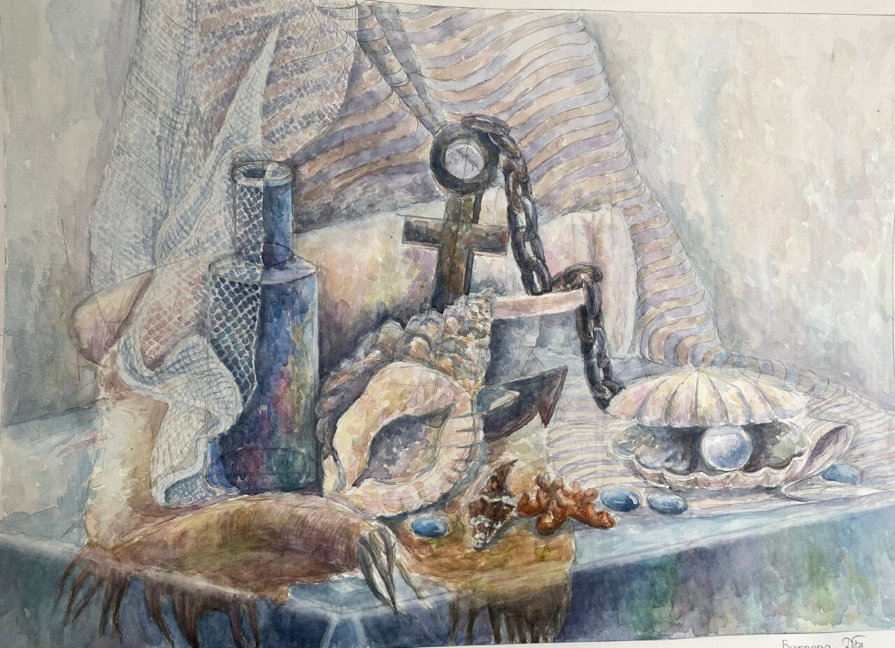 -Морской натюрморт, акварель, бумага