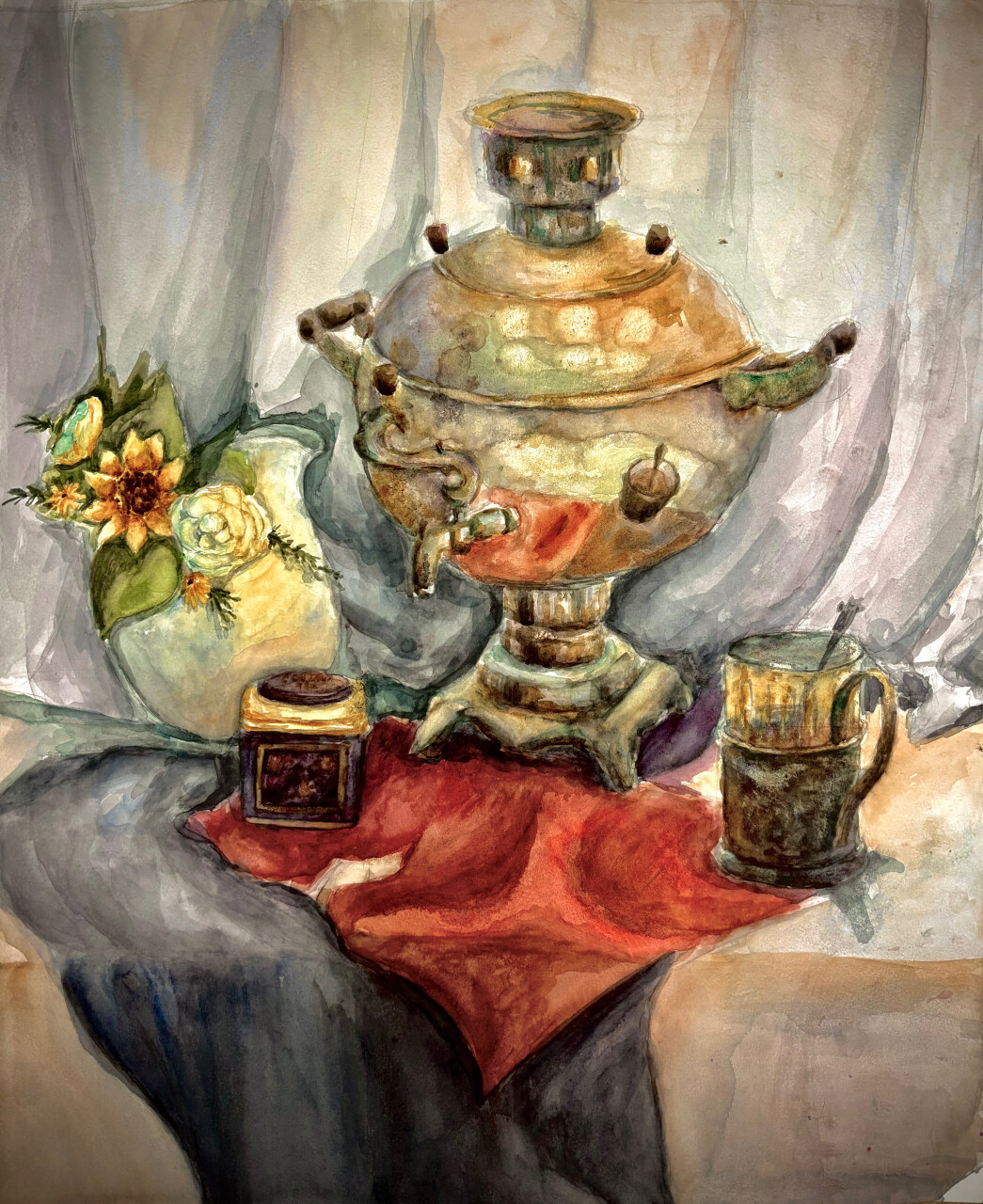 Это картина - философский взгляд на обыденность: в каждом привычном ритуале, в каждом старом предмете, в каждом луче света — заключен целый мир смыслов, если только мы остановимся и посмотрим на него внимательно. Это напоминание, что истинное богатство — не в великих событиях, а в способности находить глубокий смысл в тишине и тепле домашнего очага.