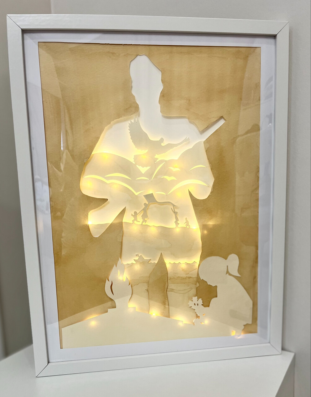 Работа выполена, в технике бумажной графики. Дополнена диодной подсветкой (работает от батареек)