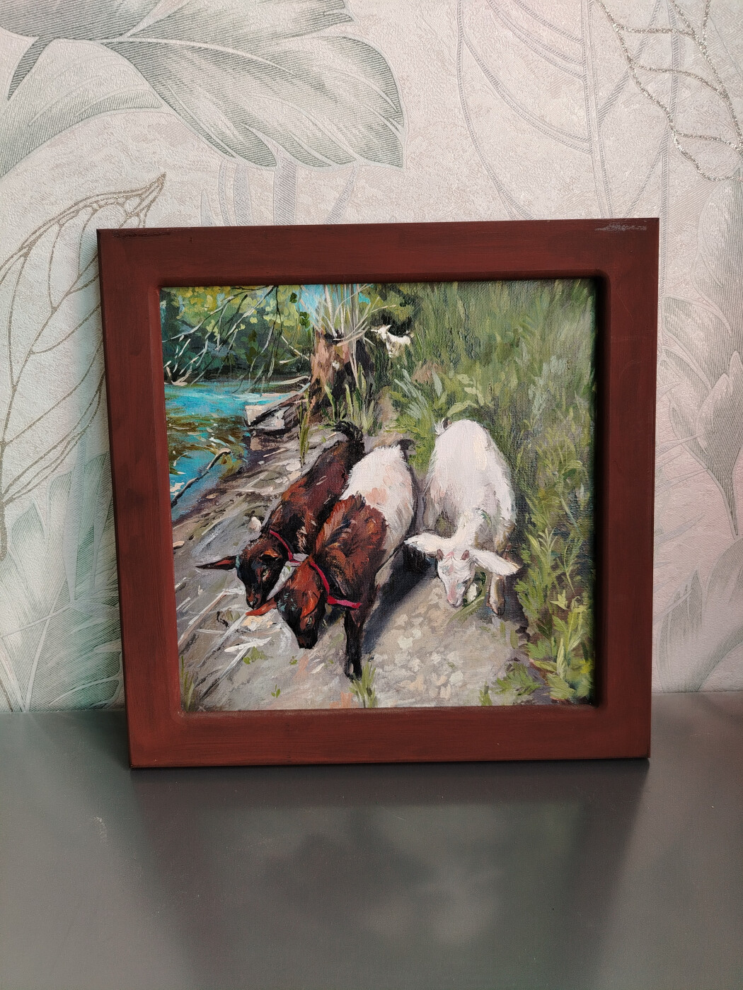 Любопытные козлята. Холс, масло. Размер 30х30см.