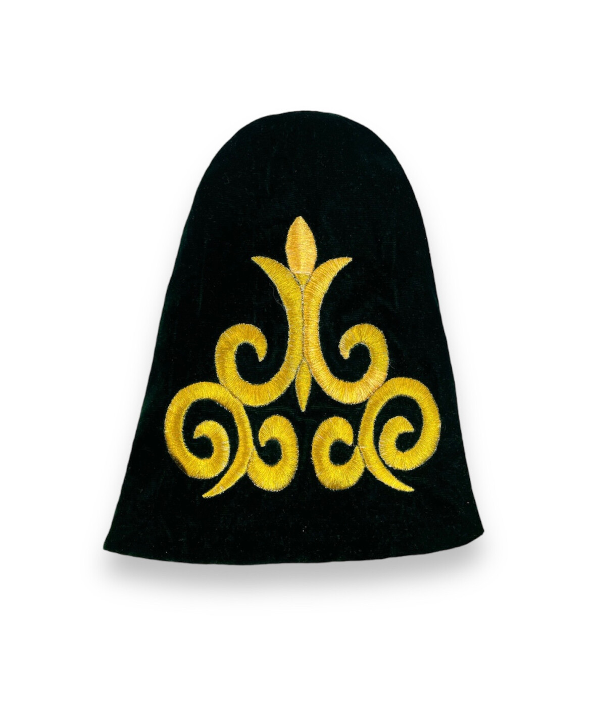 Адыгское золотное шитьё. В качестве орнамента использовались растительные мотивы : изображение листьев, цветов. Материал: бархат, золотая нить