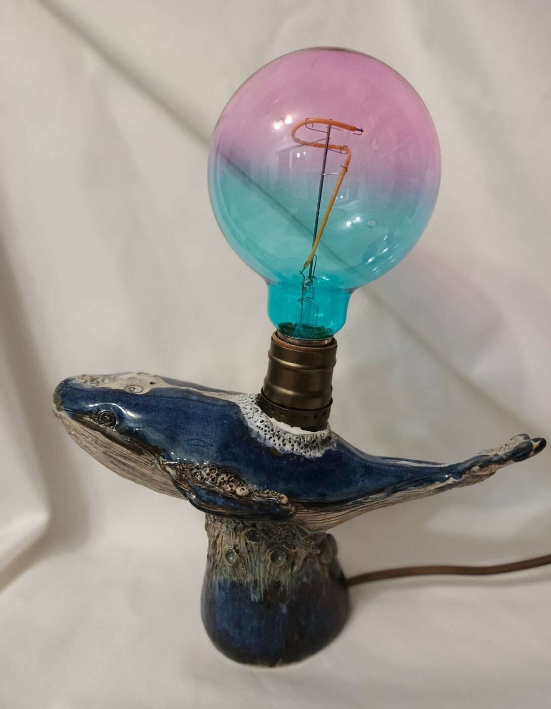 Светильник кит , выполнен из каменной массы, покрыт глазурями, гончарный круг с элементами ручной лепки