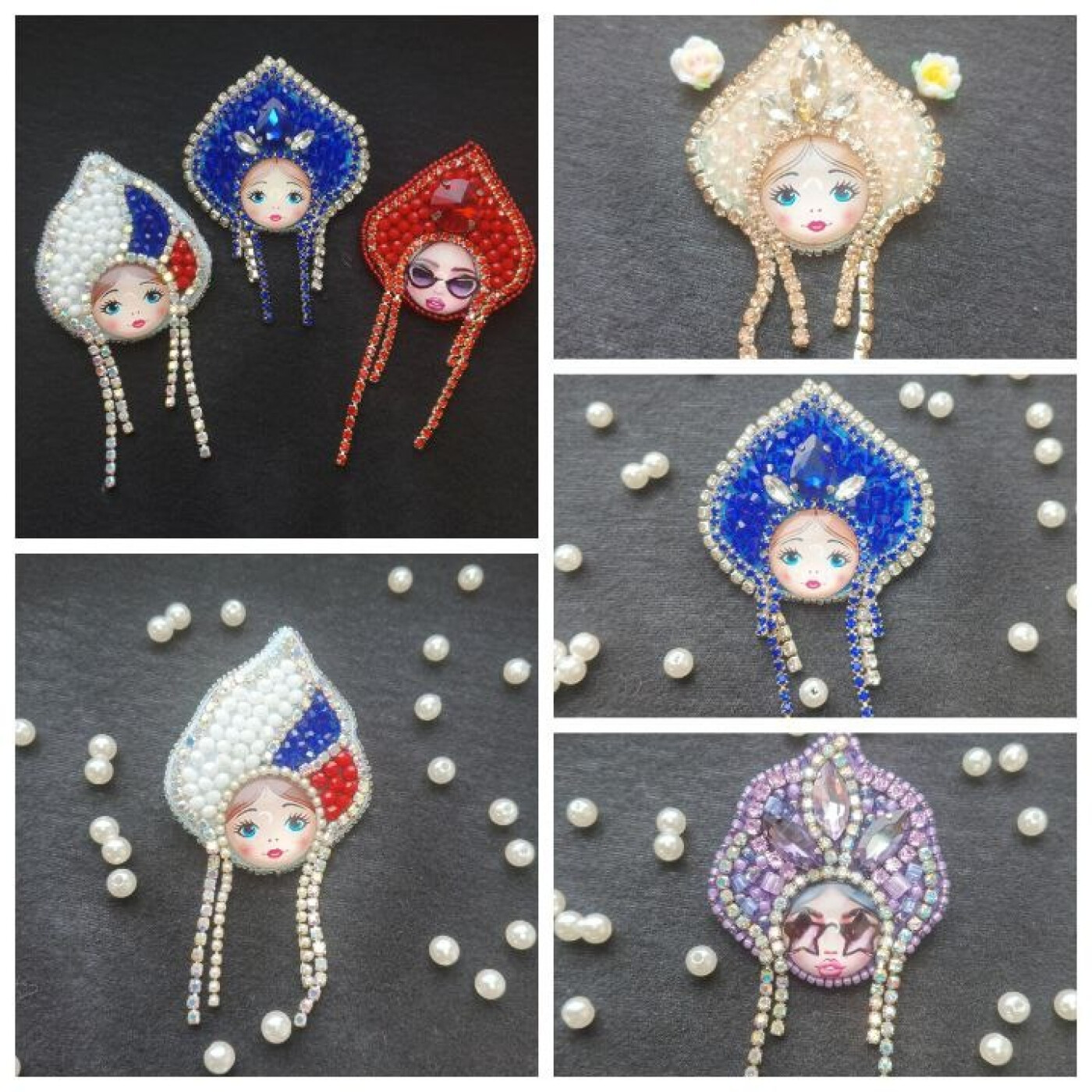 Вышитые броши из бисера — это украшение, которое можно носить на одежде, головных уборах или сумках. При вышивке применена комбинация из различных компонентов: бисер и бусины, бисер и ювелирные камни в оправах, стразы, пайетки, жемчужины.