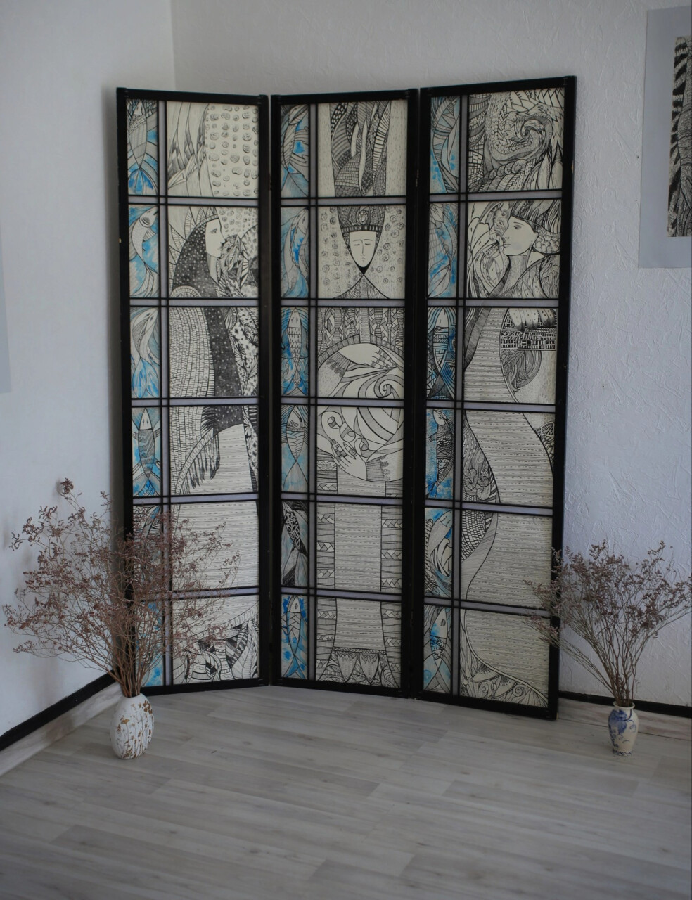 Размер 173*132см материал : ручка, тушь. Ширма