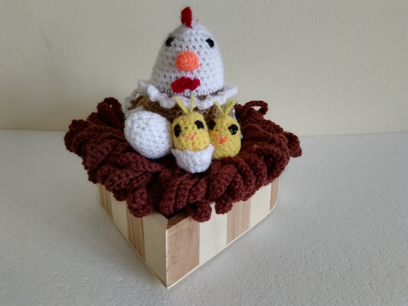 Поделка выполнена в технике вязание крючком "Пасхальная семейка"