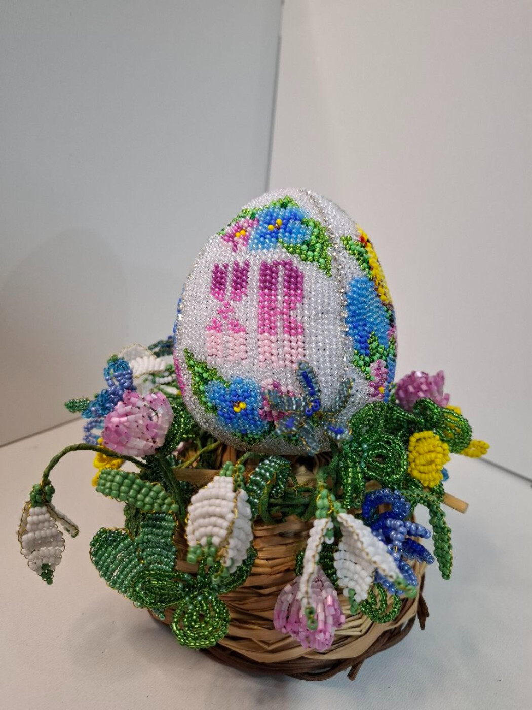 Пасхальное яйцо вышито бисером, цветы-плетение из бисера