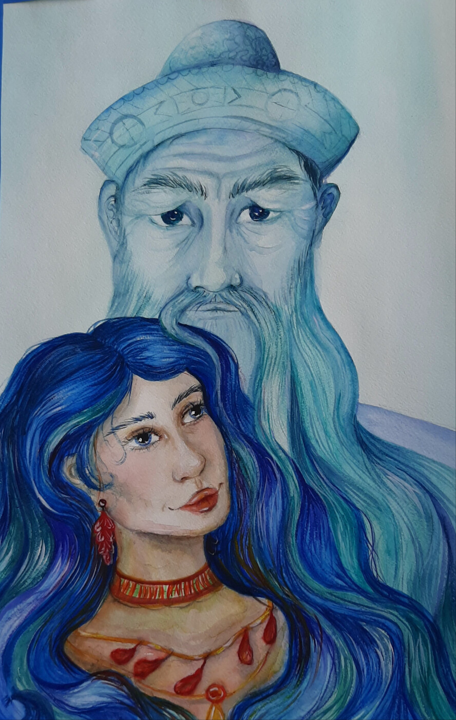 На работе изображена Ангара - дочь Байкала, как олицетворение образа сибирских женщин