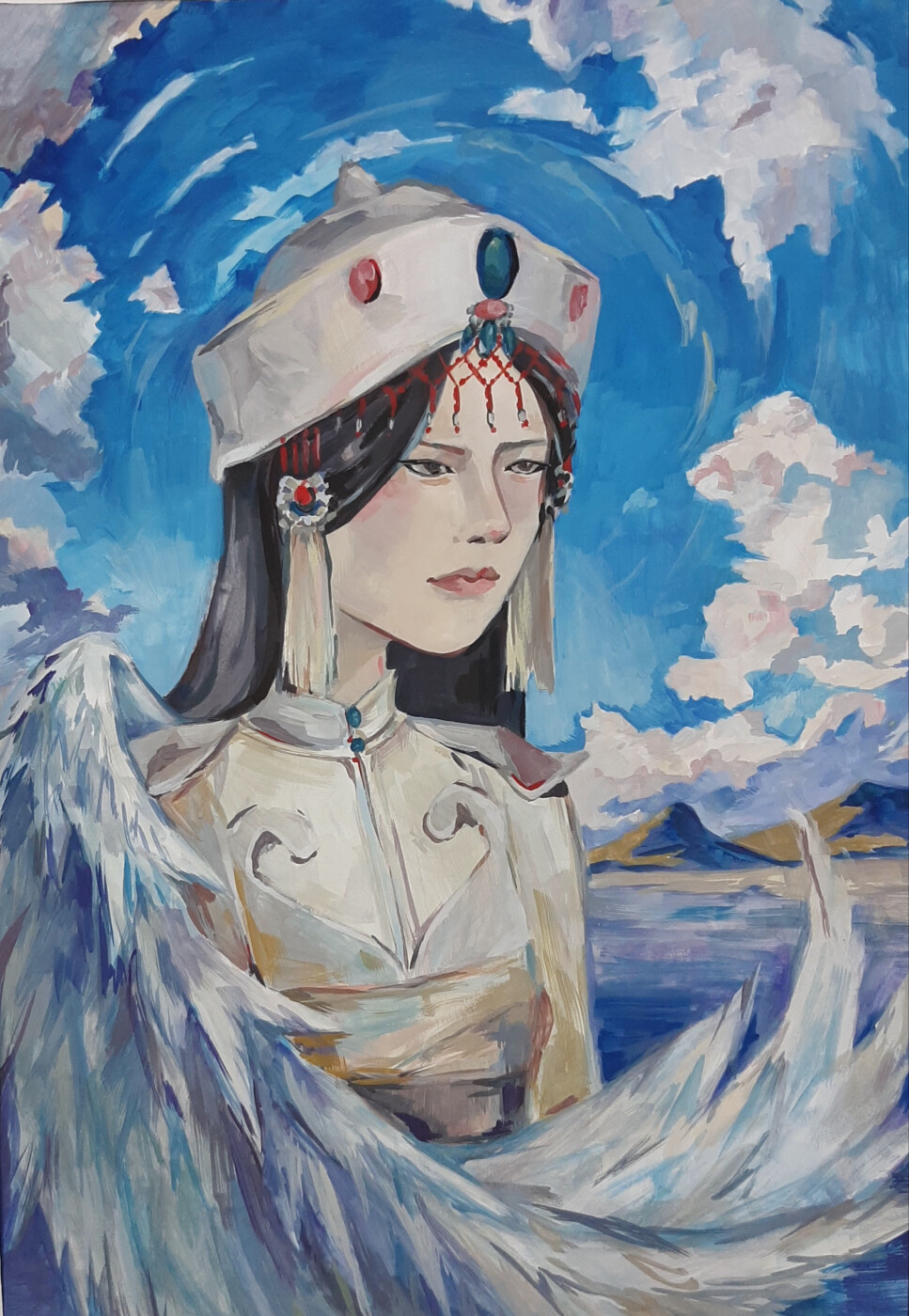 Представлен образ сибирской девушки в национальном бурятском костюме, как символ принадлежности к традиционной культуре сибиряков