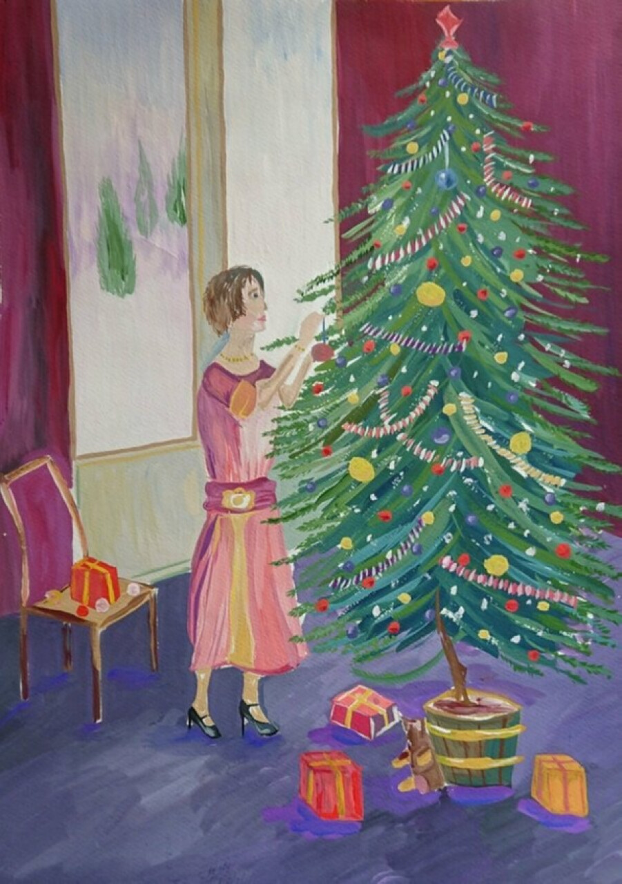 Моя мама украшает ёлку