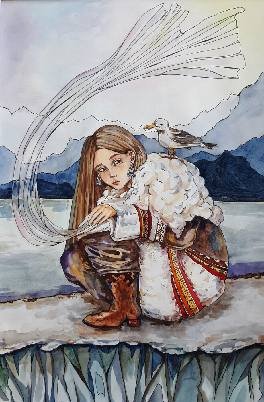 Изображена сибирская девушка, живущая на берегу Байкала