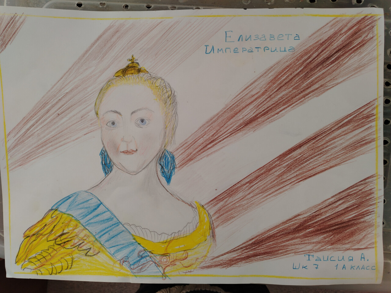 "Портрет императрицы Елизаветы" выполнен цветными карандашами.
