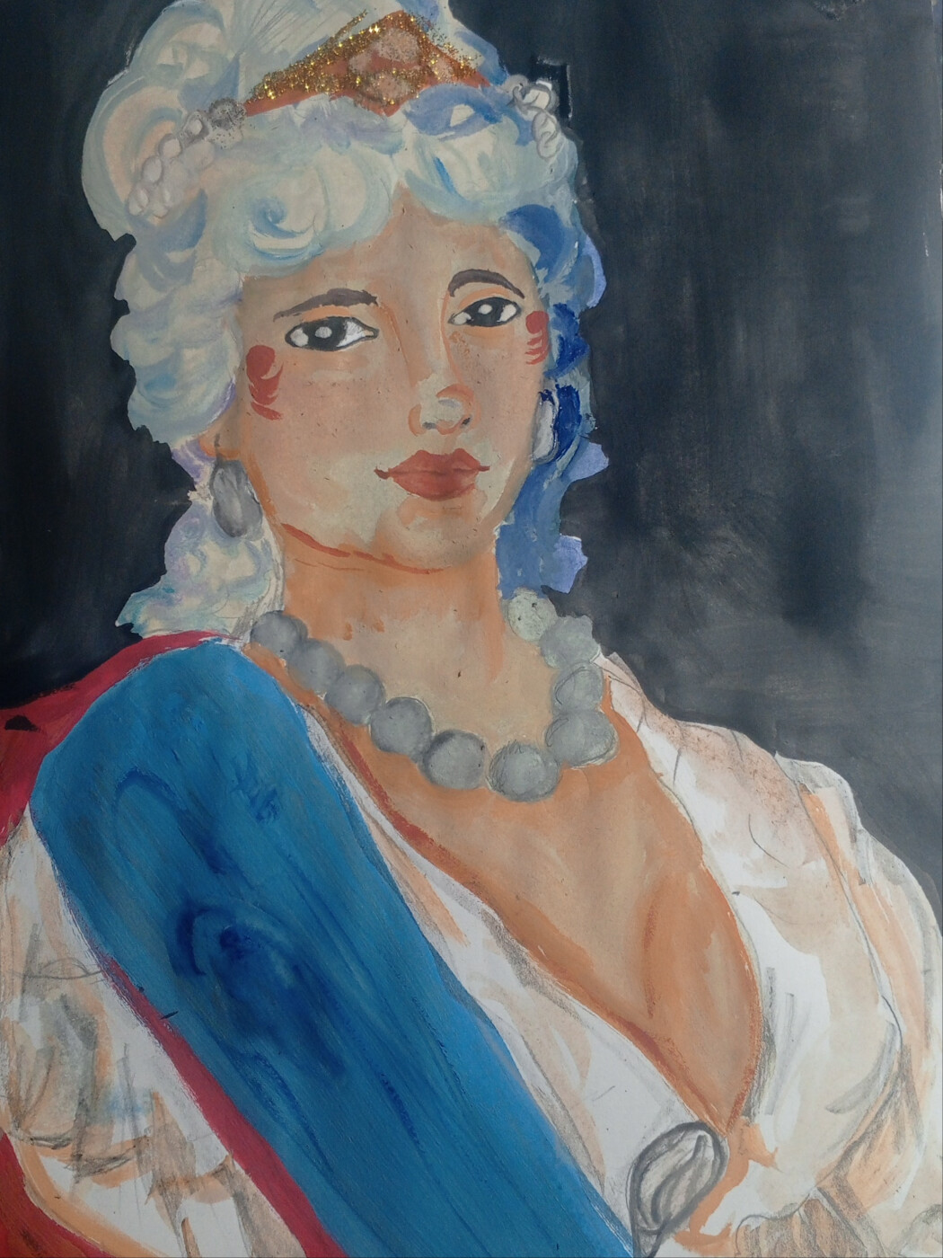 На рисунке изображена императрица Мария Фёдоровна, которая внесла в свой вклад достаточно большой по объёму в развитие нашей российской федерации. Этим рисунком хотелось показать её красивое одеяние ,лицо выразительные черты.