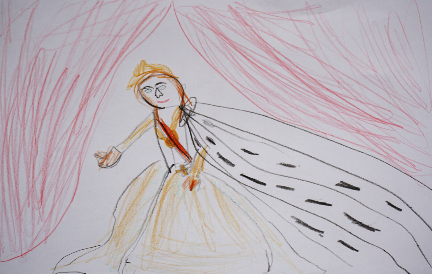 На рисунке изображена императрица Екатерина II в нарядном платье с мантией и в короне.