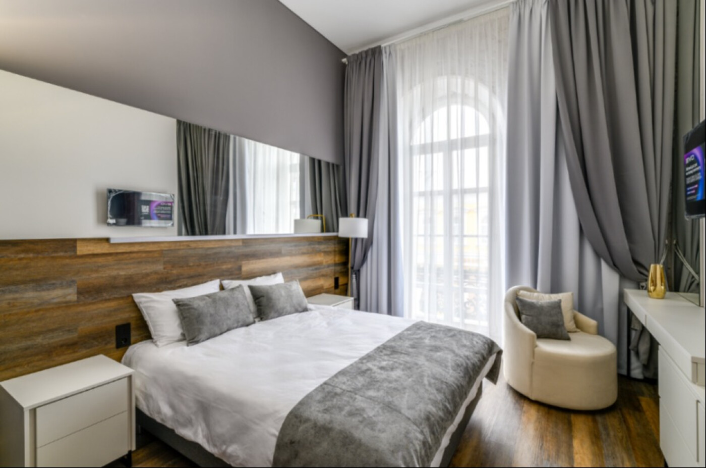 Нестандартная концепция: Апарт-отель "Марков" реализует идею "Сохраняем и создаем историю" — Как управляющая компания, мы тщательно адаптировались к особенностям исторического здания, сохранив его аутентичность и уникальный характер. В процессе реконструкции мы сохранили оригинальный кирпичный фасад и внутренние стены, что подчеркивает историческую ценность объекта и создает особую атмосферу для гостей. Особое внимание уделено мансарде — мы сохранили её архитектурные особенности, такие как наклонные потолки и деревянные балки, чтобы подчеркнуть исторический стиль и обеспечить комфортное использование пространства.