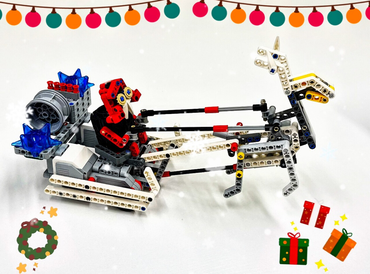 Представляю вам мою новогоднюю поделку — это волшебные сани с Дедом Морозом, который я собрал из конструктора LEGO! Он такой яркий и красочный, что сразу поднимает настроение.
