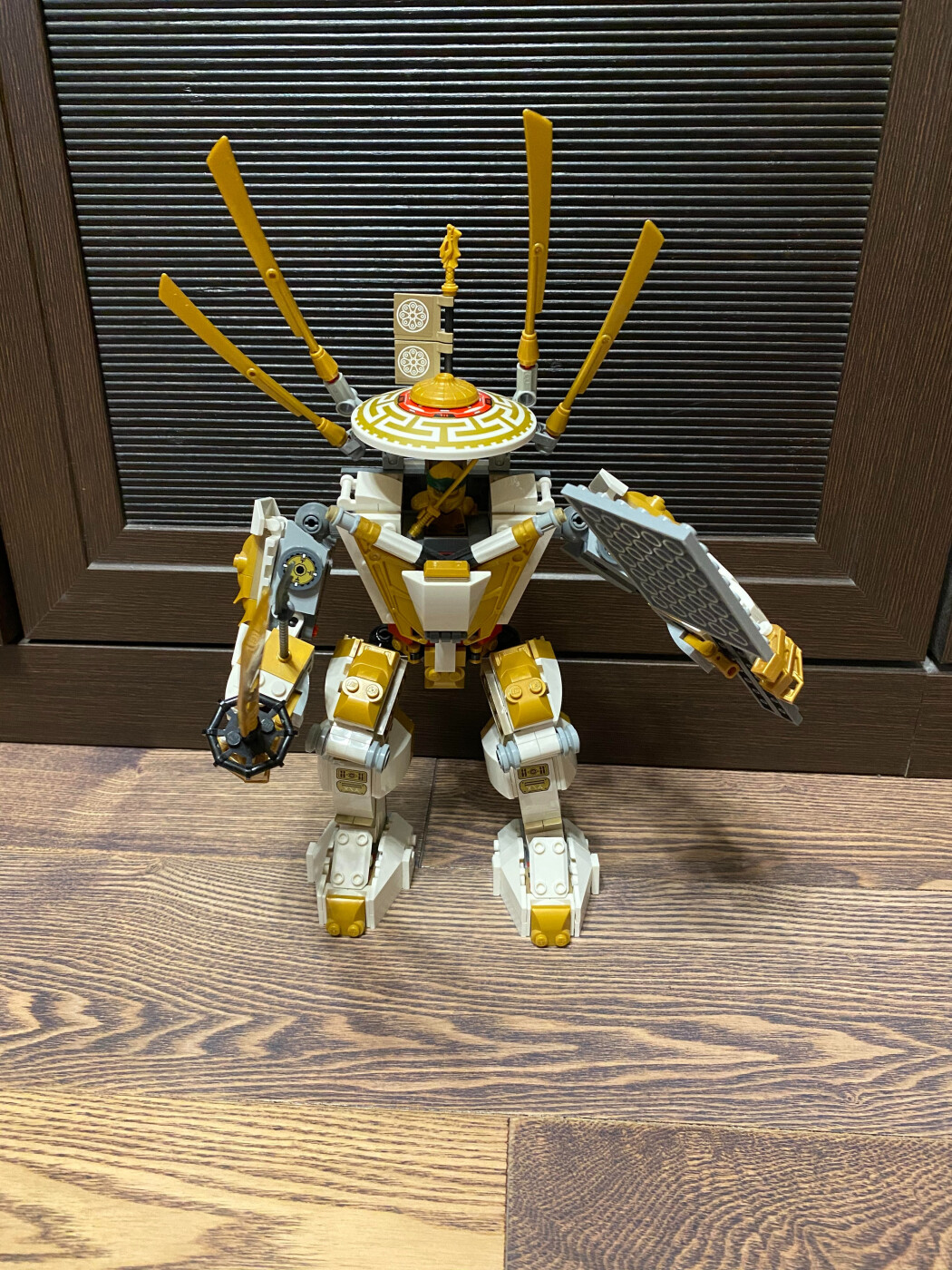Моя любимая поделка из Лего - воин-трансформер. Он может летать и драться с помощью большого меча.