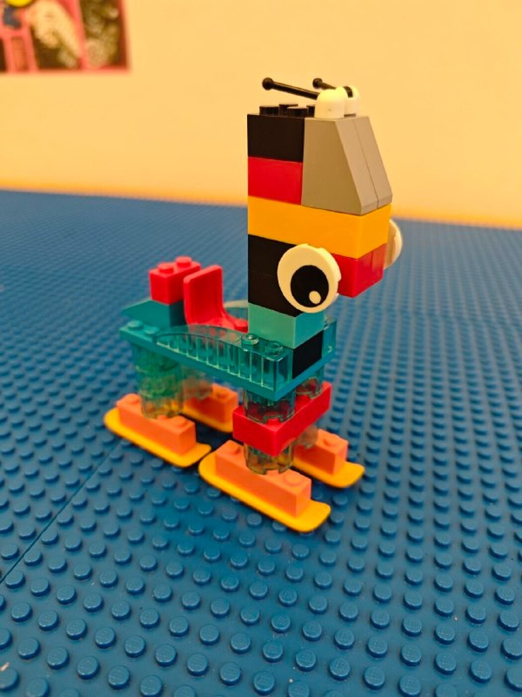 Привет! Меня зовут Тимофей, мне восемь. Я сделал Пони для конкурса, потому что это символ года. Но это не просто конь, это маленький пони! Я очень хотел, чтобы он был весёлый и зимний. Мой пони не очень большой, он спокойно умещается у меня в ладошке. Но он очень яркий и забавный! Он красные, жёлтые, оранжевый и немного синие детали. Получился как новогодний фейерверк. У него доброе личико и два больших глазика, который смотрит с интересом. Пони как будто улыбается! Самое классное — он готов к зиме и к играм! У него на спине прикреплён лего-стульчик. Что является седлом! На таком стульчике может кататься маленький человечек. А ещё я сделал ему особенные лапки. На них — маленькие плоские дощечки! Это же снегоходы! Ну, или лыжи для пони. Чтобы он не проваливался в снег, а легко катился по сугробам. Представляете, как здорово? Он может скакать, а может скользить по льду на своих дощечках. Мне кажется, он самый счастливый зимний пони на свете. Он не мёрзнет, потому что он яркий, как огонёк. У него есть стульчик, чтобы катать друзей. И есть лыжи, чтобы везде успевать. Он похож на волшебного новогоднего коня из сказки, который развозит подарки, но не по небу, а по самому настоящему хрустящему снегу. Я назвал его Снежок. Потому что он резвый и быстрый, как снежный вихрь. Он точно выиграет все зимние гонки! Я очень надеюсь, что на конкурсе его заметят и поймут, какой он особенный. Он же не просто стоит — он готов к приключениям!