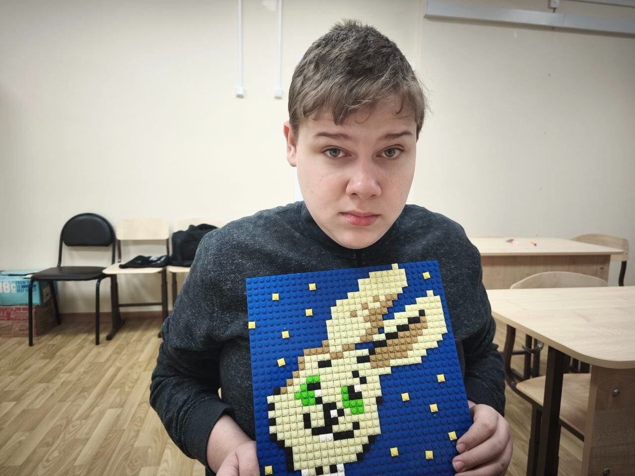 Работа выполнена в стиле арт -лего обучающимся ШСА "Невозможное возможно" для детей с ОВЗ.