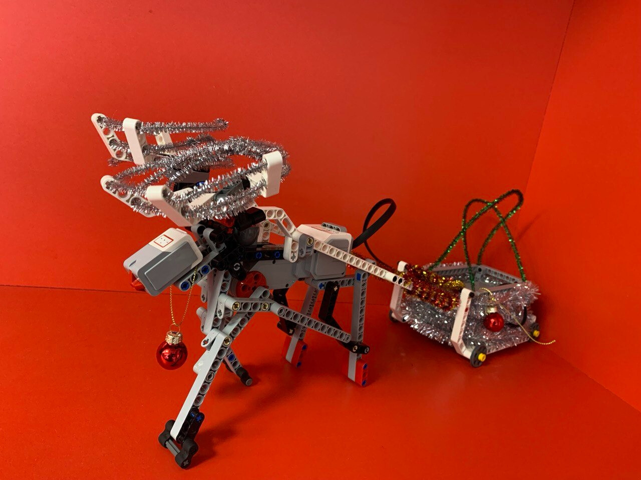 Помощник Деда Мороза - северный олень "Снежок". Модель собрана из образовательного конструктора "LEGO EV3". Работает по программе, которая ускоряет и замедляет мотор. Модель движется вперед, на заданное количество оборотов.