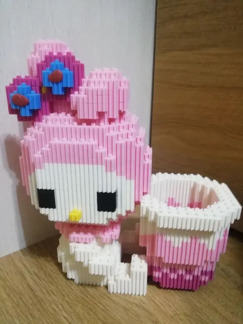 Это мой любимый зайка. Он не только красивый , но и удобный, внутри я храню маленькие важные вещицы. Собирать зайку было не сложно, я очень люблю Лего и конструкторы.