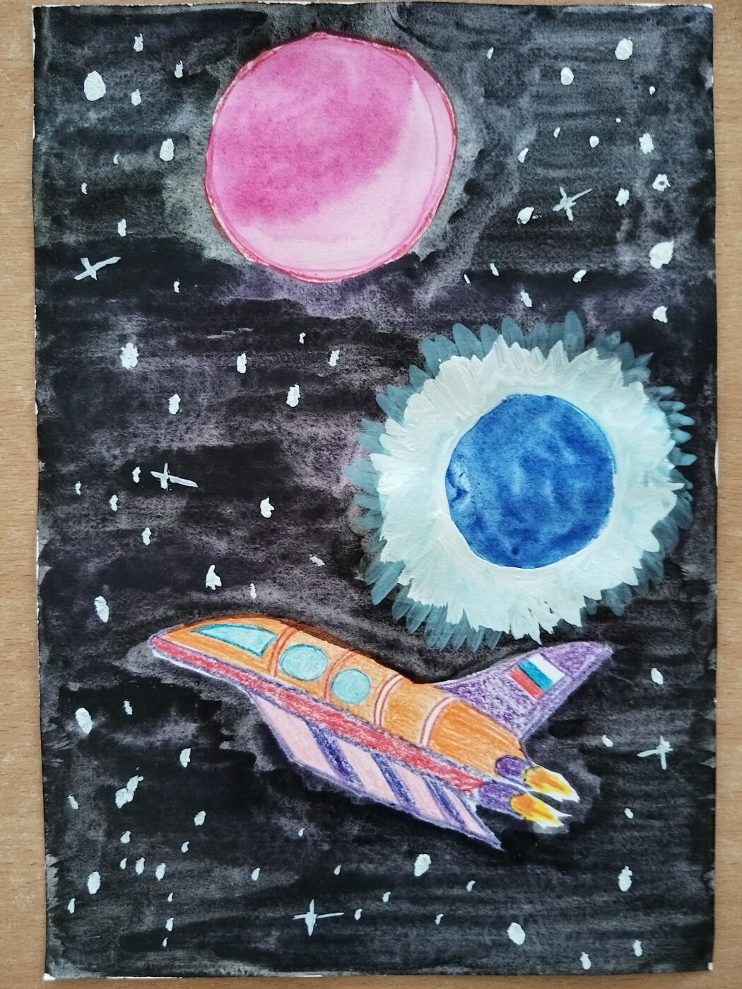 Акварель, восковые мелки, А4