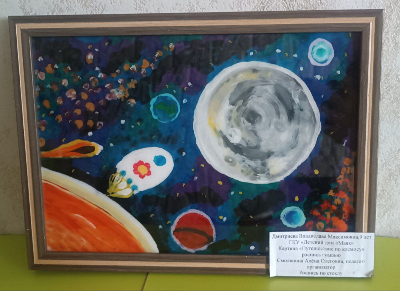 это картина нарисована на стекле в технике "роспись по стеклу"