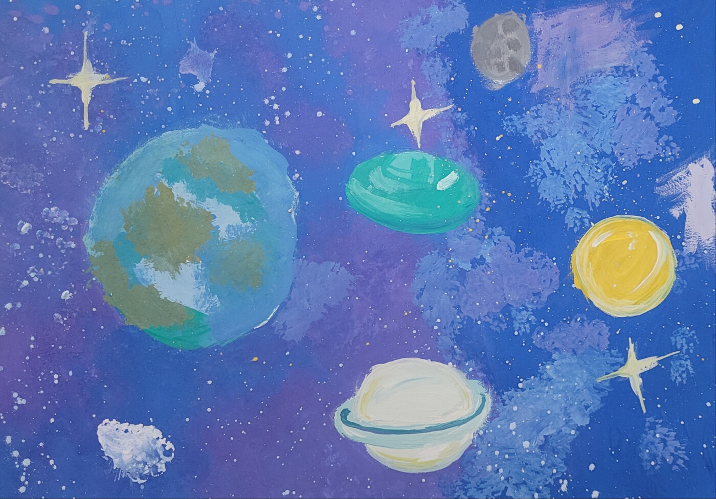 Работа "Космические дали". Выполнено гуашью.